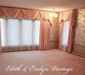 Room number four in our total home renovation is the Master Bedroom. We just recently completed this remodel, as we are systematically, room by room, renovating our vintage French Country home.This is the "before" of the master bedroom. It's a wonderful, large room, but it had not been updated since 1972 when the home was built. A true time capsule, complete with pink shag carpet, popcorn ceiling, pink silk drapes, and floor to ceiling rose wallpaper.