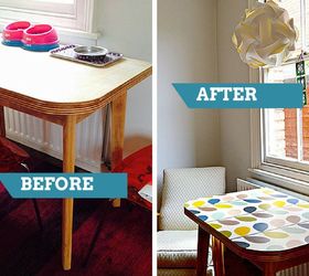 I've used wallpaper to bring to life old tables (like the Orla Kiely one above), made lampshades with it and even covered mirror frames. I've also used wallpaper in a fantastic suitcase side table upcycle click here to see.