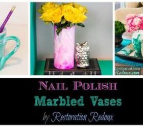 Original article and pictures take http://www.hometalk.com/9945525/nail-polish-marbled-vases site